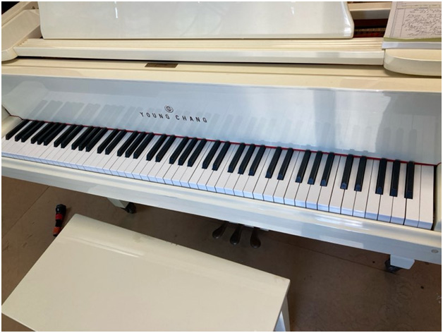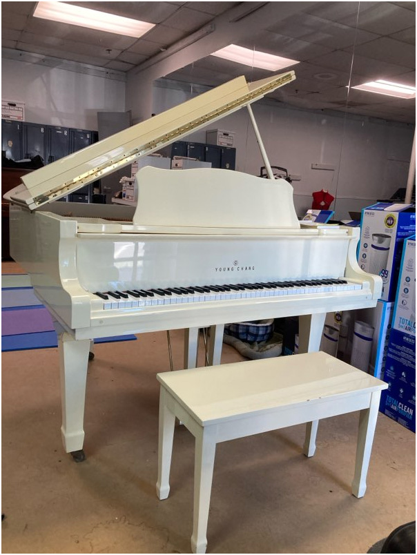 This beautiful, bright White Young Chang Console Piano is for sale and in excellent condition, having been hardly played. The piano was recently tuned to A440 concert pitch and features bright white keys and a flawless soundboard, offering a rich, full, and highly resonant sound. All pedals are working perfectly, and the instrument includes a matching bench.